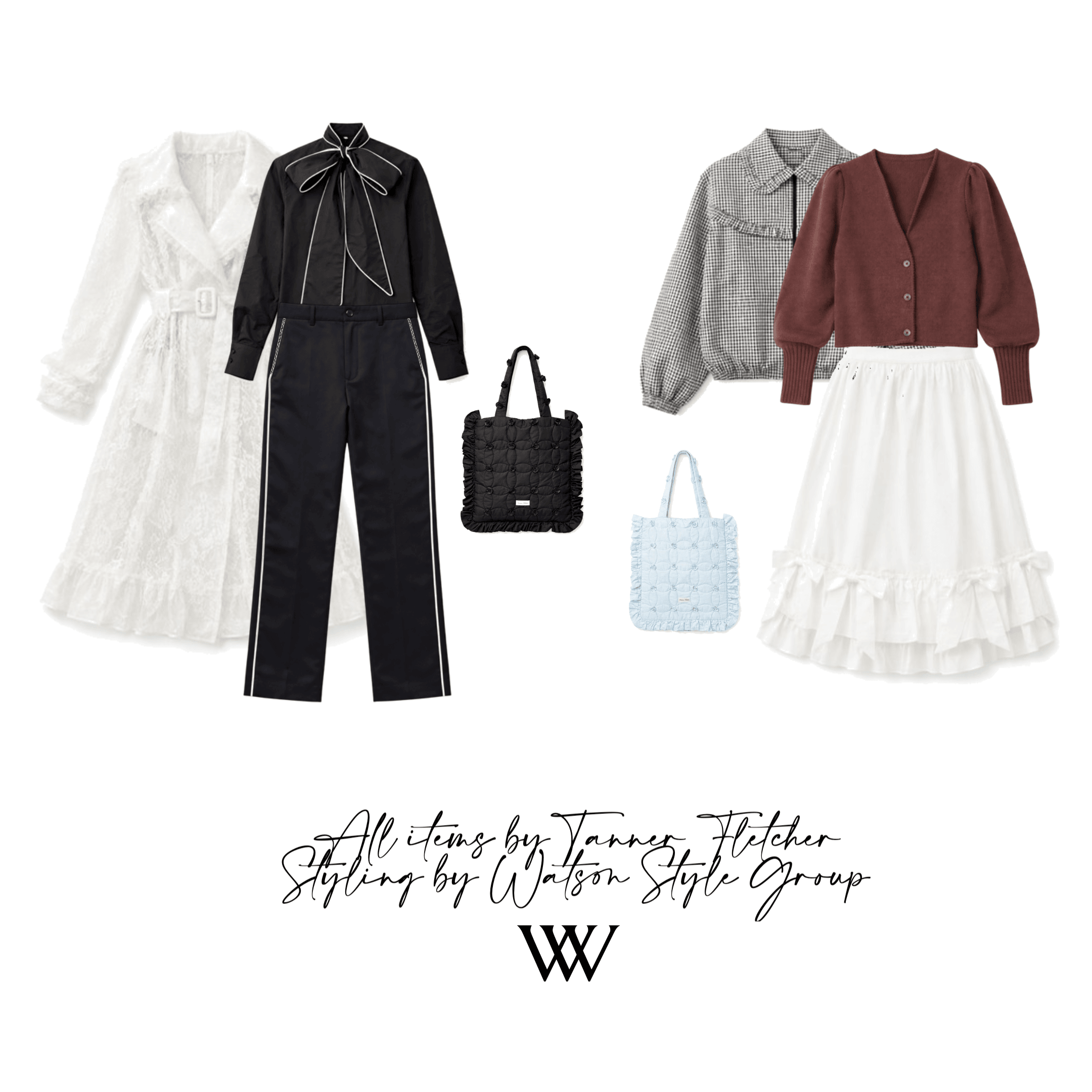 The Watson Style Group x Tanner Fletcher Edit is built around nuance rather than spectacle. It highlights how thoughtful design elements can shift the tone of a wardrobe without overwhelming it. Lace, quilting, and ruffles are used here as deliberate points of interest, not decorative afterthoughts. A sheer lace trench reframes classic outerwear, oversized bows introduce a sense of confidence rather than whimsy, and quilted accessories elevate craftsmanship into something distinctly modern. The looks create a balance that reflects how individuality can live comfortably within a well-composed wardrobe.